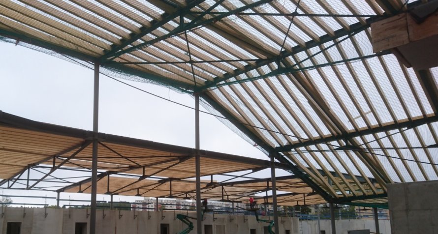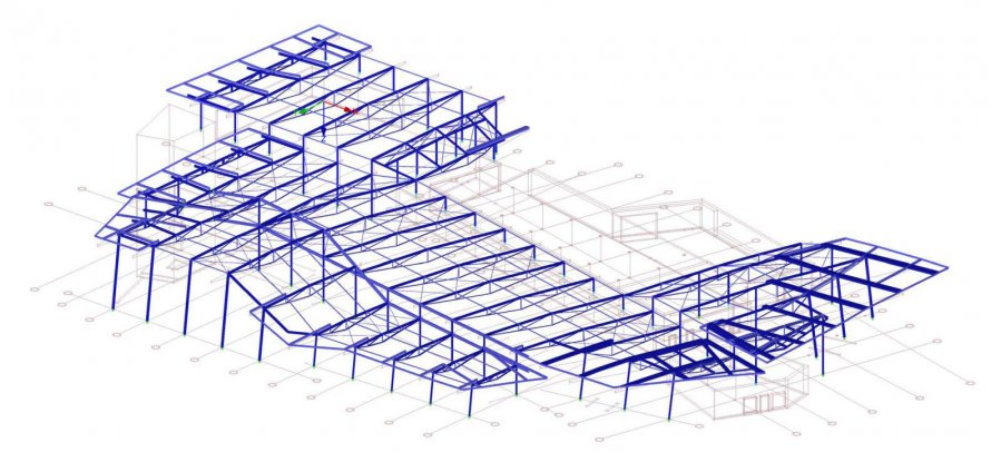 3-geschossige Stahlbetonkonstruktion mit Flachdecken, Beton und Stahlrohrverbundstützen. Badehallendach als Stahlkonstruktion. Gründung auf Mikropfählen als Druck- und Zugpfähle zur Auftriebssicherung.
