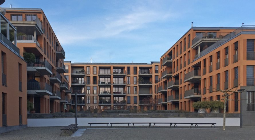 Die beiden Untergeschosse sind komplett in Stahlbeton ausgeführt. Die Tiefgaragendecke fängt als linien- und punktgestützte Flachdecke die Gebäudelasten der Wohnblöcke ab und leitet sie in die Gründung. Die Gebäude selbst sind als Mauerwerksbau mit aussteifenden Innenwänden aus Stahlbeton und Stahlbetonflachdecken ausgeführt.