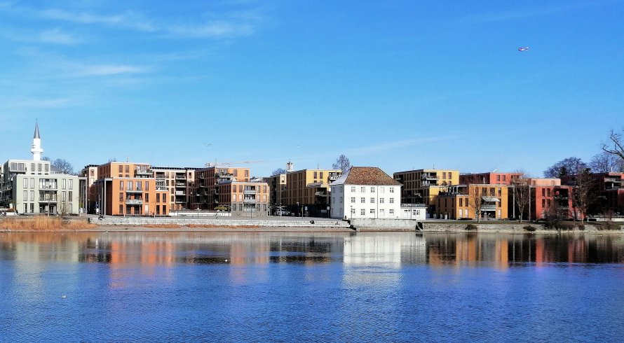 Die Wohnanlage befindet sich in leichter Hanglage in Überlingen. Das Untergeschoss, für Keller und Technikräume, liegt komplett im Erdreich und erstreckt sich nicht auf die gesamte Bauwerksfläche. Zum Teil liegt das Untergeschoss unter der Tiefgarage, die nach Süden nahezu ebenerdig erschlossen wird, und hangseitig jedoch in das Gelände eingebunden ist. Die zum Gewerbe gehörende Parkfläche ist als offener Parkraum unterhalb des südlichen Wohngebäudes angeordnet. Auf dem Tiefgaragen-, bzw. Erdgeschoss sind drei Wohngebäude unterschiedlicher Größe mit jeweils 4 Vollgeschossen und einem Penthouse-Geschoss angeordnet.