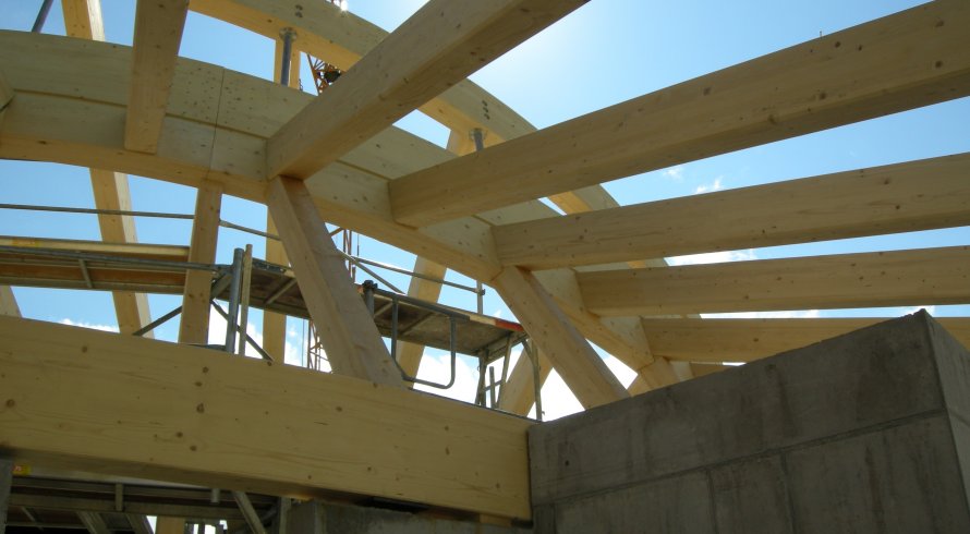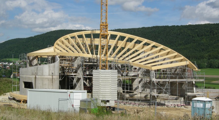 Neubau eines Einfamilienhauses mit hohen technischen Anforderungen im Bereich Massiv- und Holzbau – alles ist Rund. Die Planung wurde komplett in 3D konstruiert.